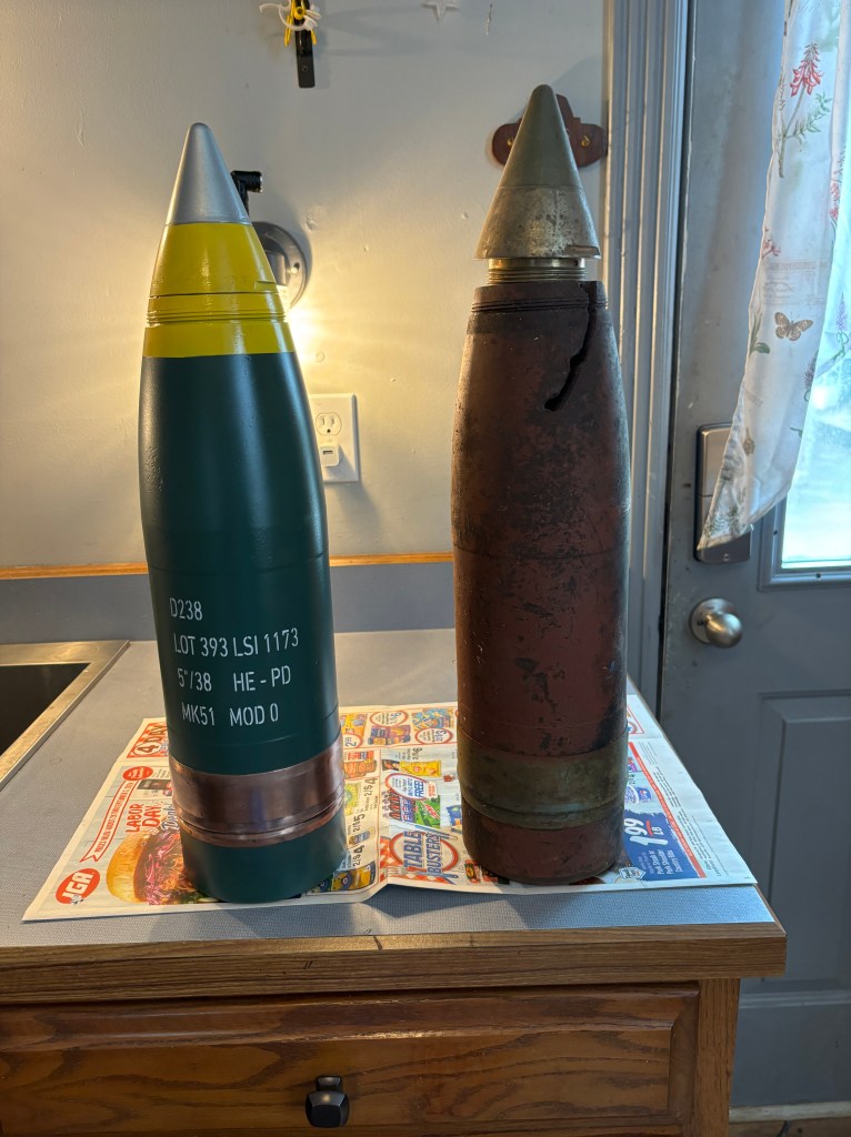 U.S. Navy 5”/38 Caliber Projectiles – Before and after full restoration.